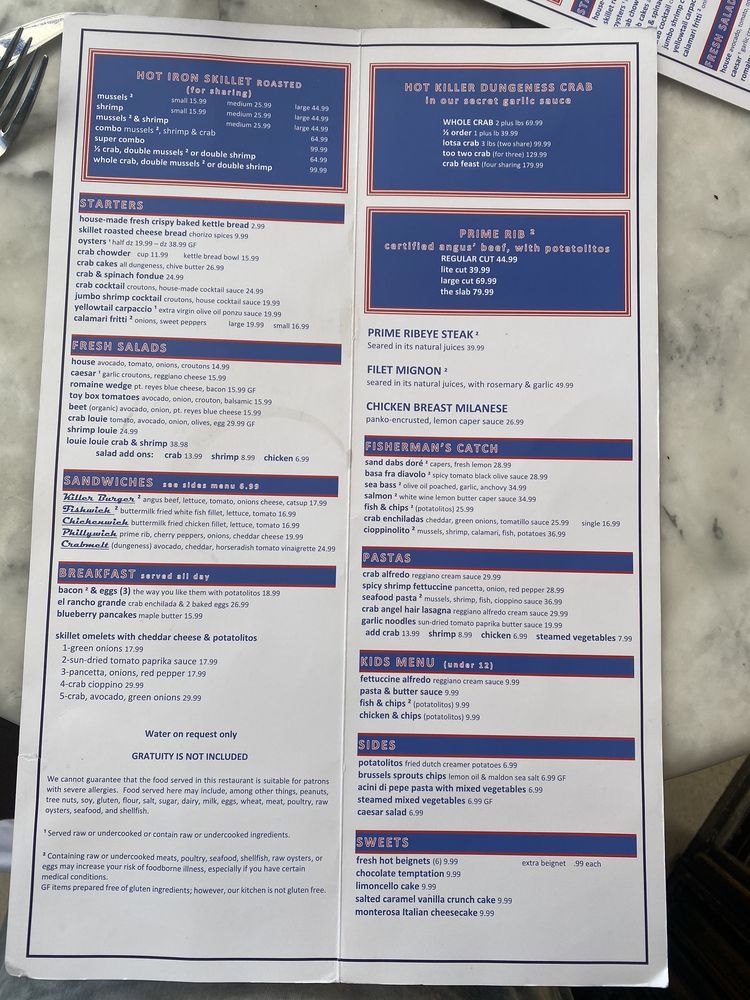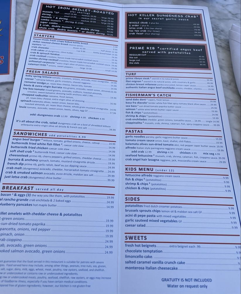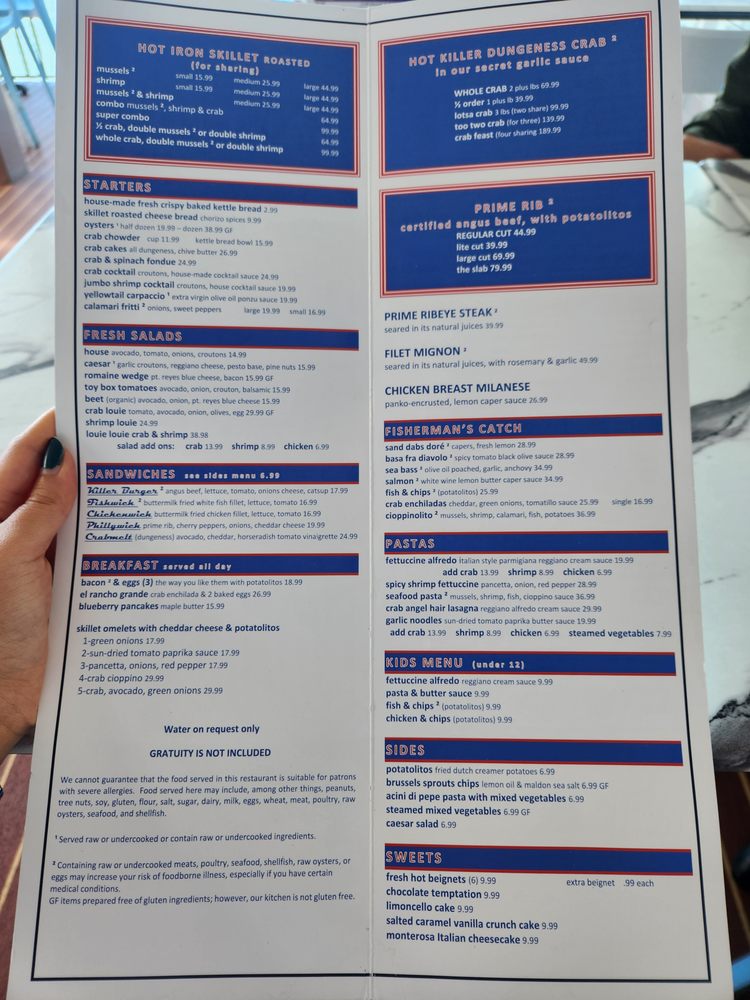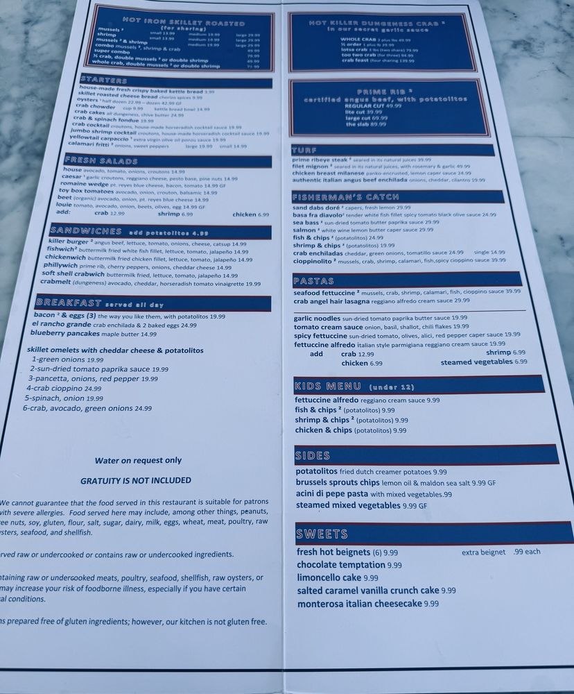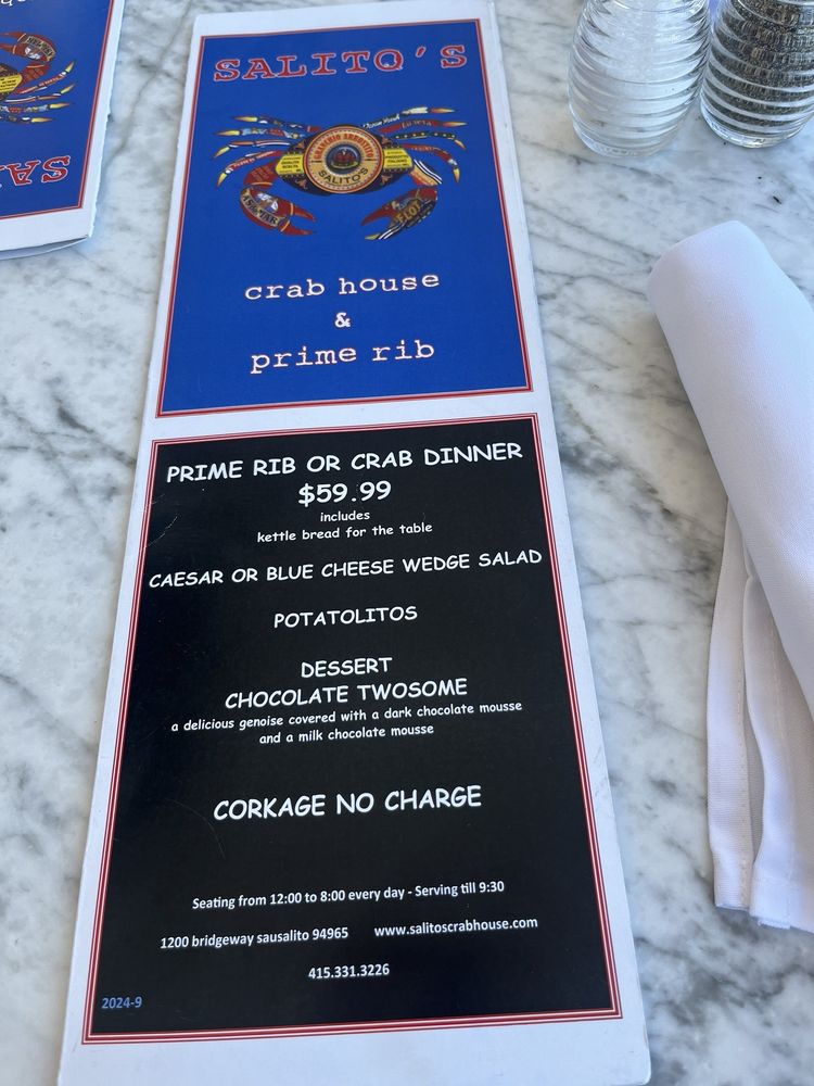 Salito’s Crab House & Prime Rib in Sausalito is a seafood gem offering a unique dining experience. The extensive menu features delectable dishes like large garlic crab, skillet-roasted cheese bread, crab chowder, and crab enchiladas. The drinks menu is equally impressive with options like Blueberry Mojito and Basil Martini.